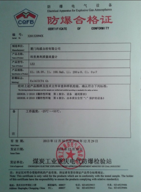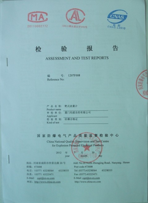 靶式流量計(jì)隔爆型檢驗(yàn)報(bào)告